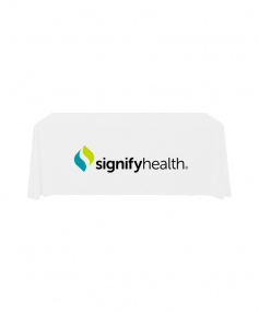 6' Standard PolyPoplin Throw style table cover with one color logo. Designed for quick and easy use while looking great. All corners are rounded meaning they will not gather and lay on the floor. Floor length on all 4 sides. Made from woven polyester. 72" L x 30" D x 29" H