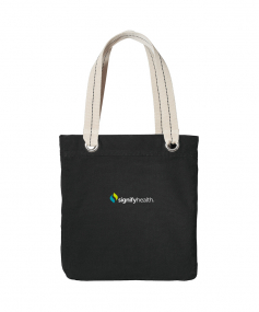 The Allie Tote is perfect for shopping, commuting or sightseeing. Contrast lining, striped handles and large metal grommets add a touch of whimsy to this casual tote. 11 Oz., cotton canvas. Interior zippered pocket. 13.25" W x 15.75" H x 3.5" D.