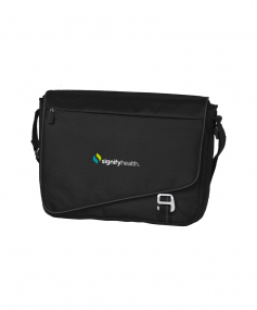 Constructed from durable ballistic fabric this modern messenger will keep you organized and protect your tablet and laptop with padded compartments.1680 denier ballistic polyester. Adjustable sling shoulder strap. Organization panel under asymmetrical front flap. Zippered pocket on front flap for easy embellishment. Large main compartment with padded tablet sleeve. Fits most 15" laptops. 11" H x 15" W x 3.25" D.